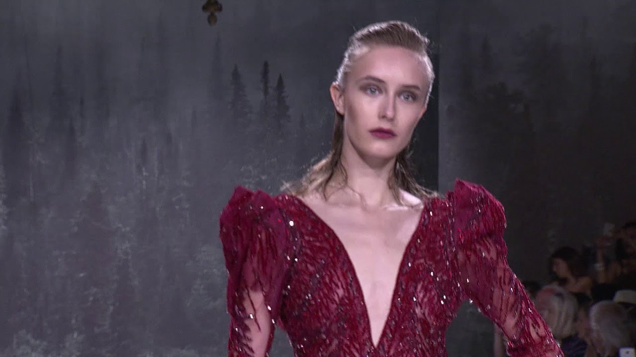 The collection is inspired by the glistening white caps of the majestic mountains. Like slumbering giants beneath thin snow blankets of white, Ziad Nakad's designs lay in dreamful sleep casting incantations over the great lines of pines and hefty powerful greens that doze underneath. The magic of his touch turns the listless shafts of branches and trees of the forest into an exquisite collection of enchanting dresses. The charm of his talent invokes the solar winds from the highest mountains and makes every dress an aurora of mystic colors and intricacies.